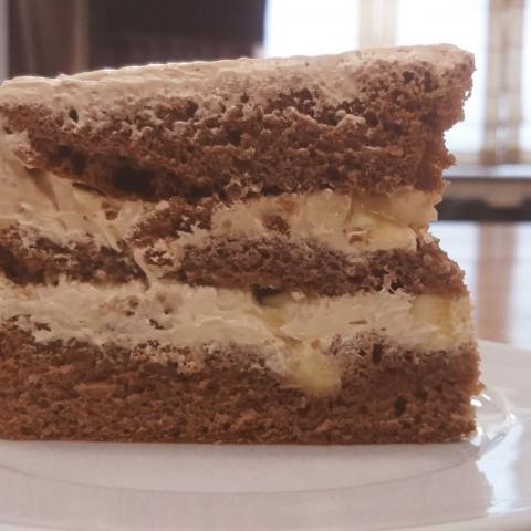 Шоколадно-банановый бисквит шоколадный. крем сливки молокосгущенное сс какао крем. банан 17.5руб за 1 кг